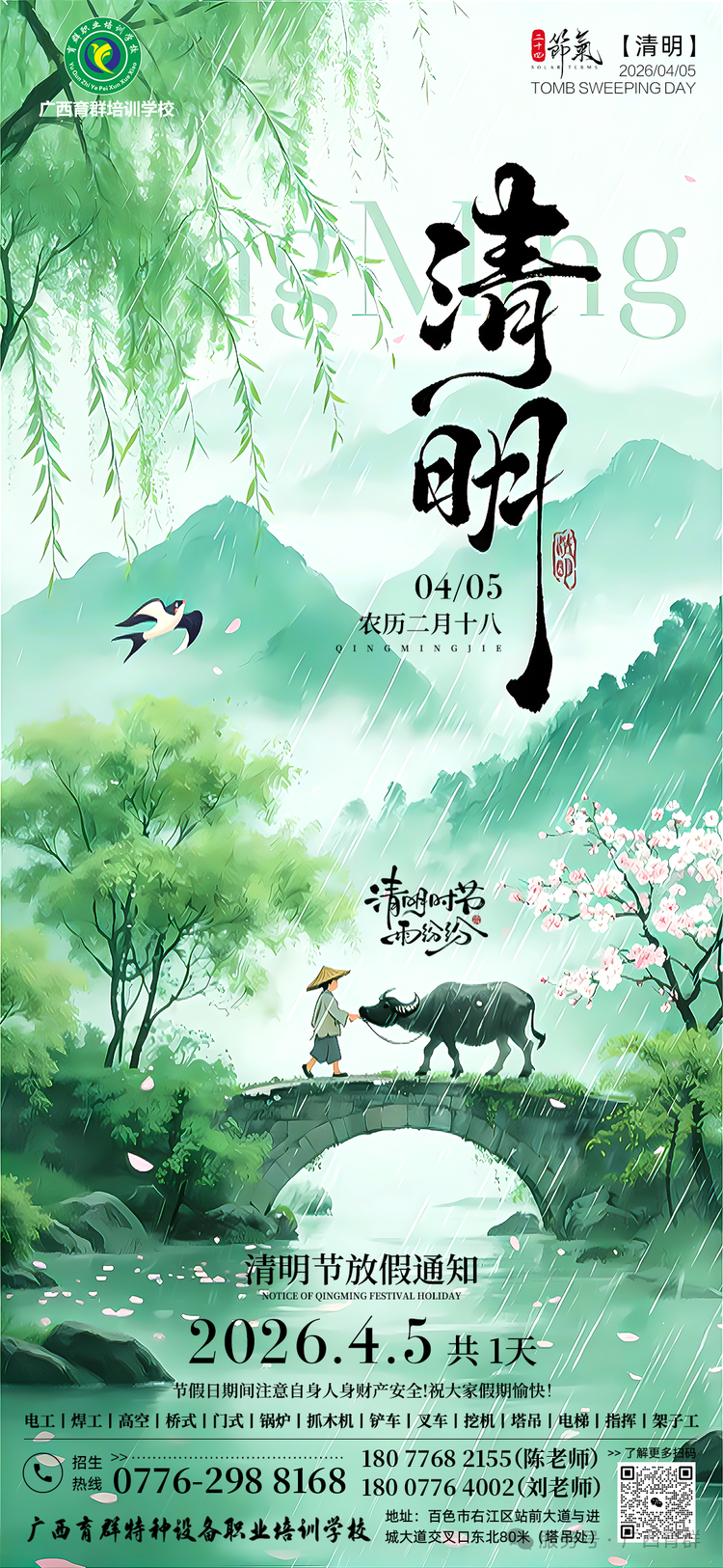 清明节,又称踏青节、行清节、三月节、祭祖节等,在每年4月4日至6日之间,是祭祀、祭祖和扫墓的节日。清明节源自上古时代的祖先信仰与春祭礼俗,兼具自然与人文两大内涵,既是自然节气点,也是传统节日。