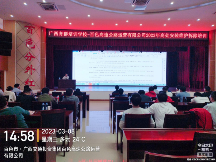 为了保障从业人员的 度以及在施工过程中的安全。2023年3月8日,广西交通投资集团百色高速公路运营有限公司组织63名职工参加我校高处安装维护拆除培训,安全培训的目的就是努力提高职工队伍的安全素质;提高广大职工对安全 重要性的认识,增强安全 的责任感;提高广大职工遵守规章制度和劳动纪律的自觉性,提高广大职工的安全技术知识水平,熟练掌握操作技术要求和预防、处理事故的能力。